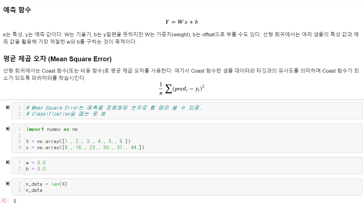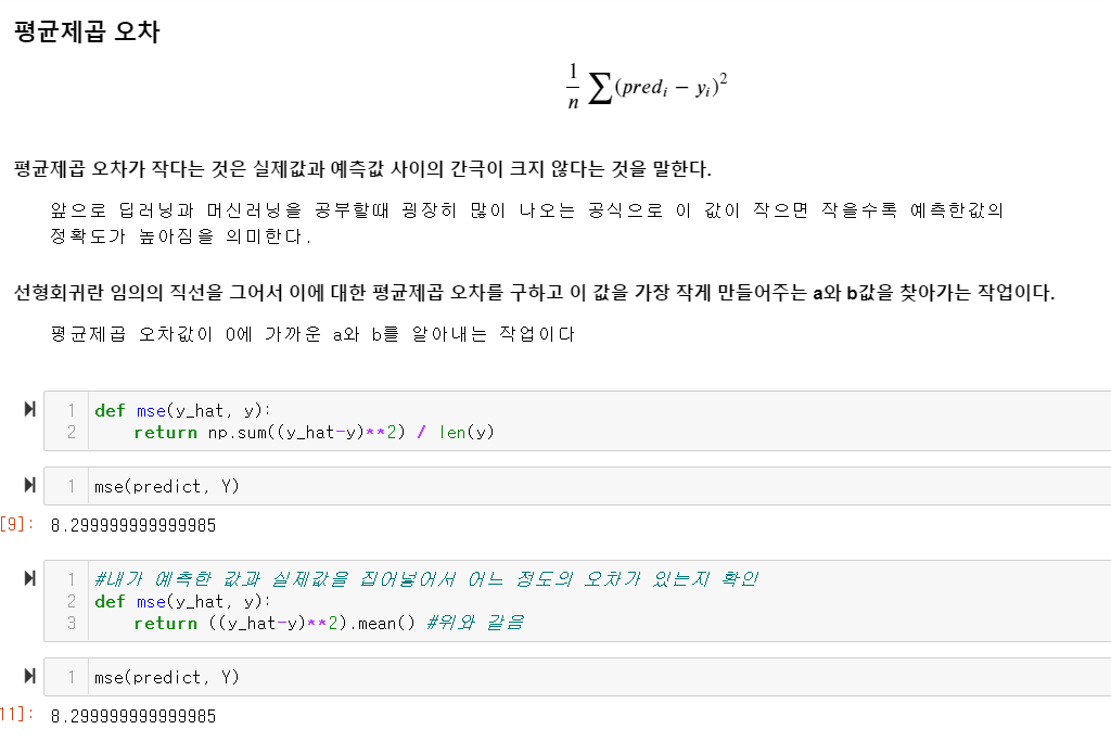 평균 제곱 오차(Mean Square Error = MSE)