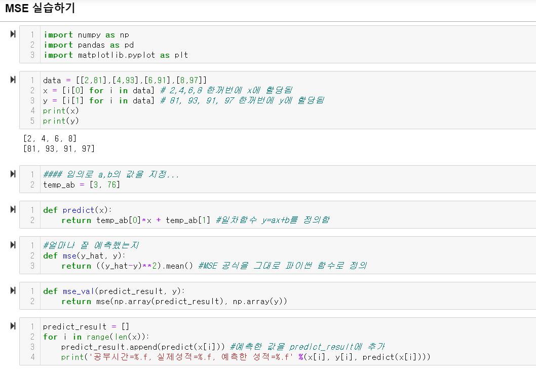 Mean Square Error (MSE) 실습