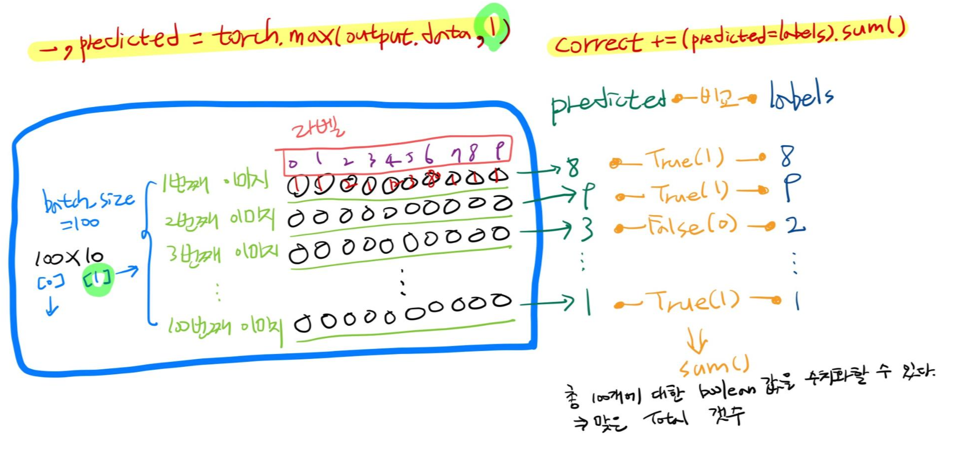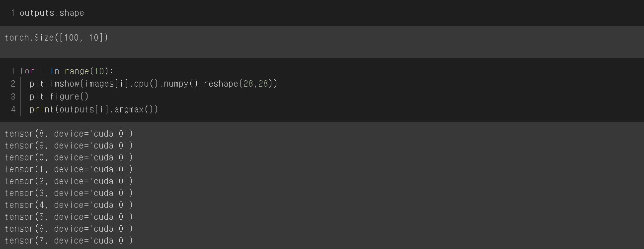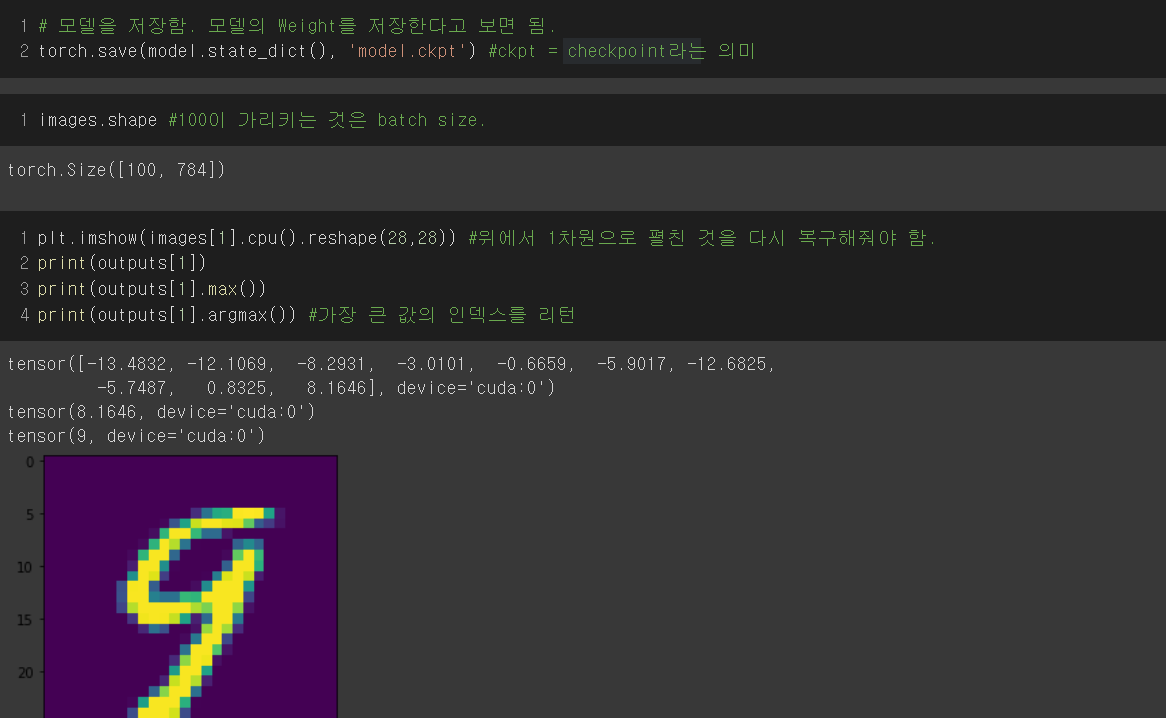 model을 정의하고 forward()를 호출한다. model.forward(images)에서 forward는 생략 가능해서 model(images)로 쓸 수 있다.