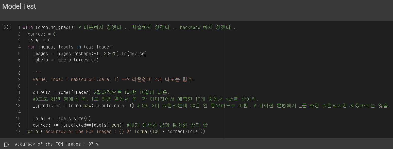 [AI/딥러닝/Python-pytorch] Colab(코랩) / MNIST를 활용한 Fully Connected Network 코드 본문