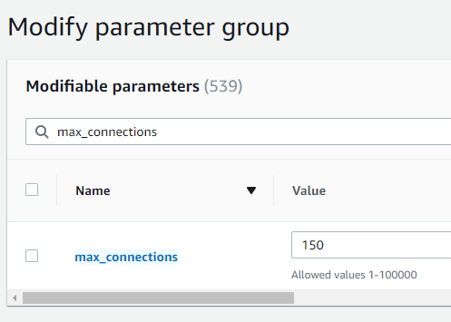 (이후에 RDS 사양을 높이게 되면 기본값으로 다시 돌려놓으면 됨)