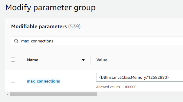 RDS의 Max Connection은 인스턴스 사양에 따라 자동으로 정해짐. 현재 프리티어 사양으로는 약 60개의 커넥션만 가능.