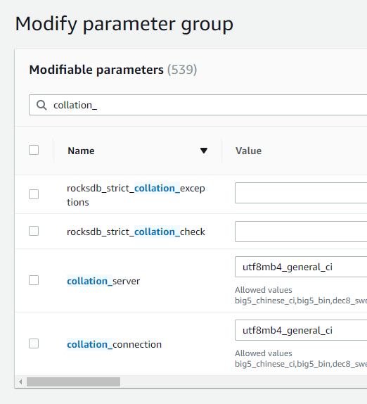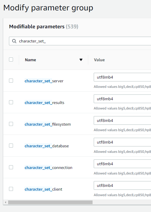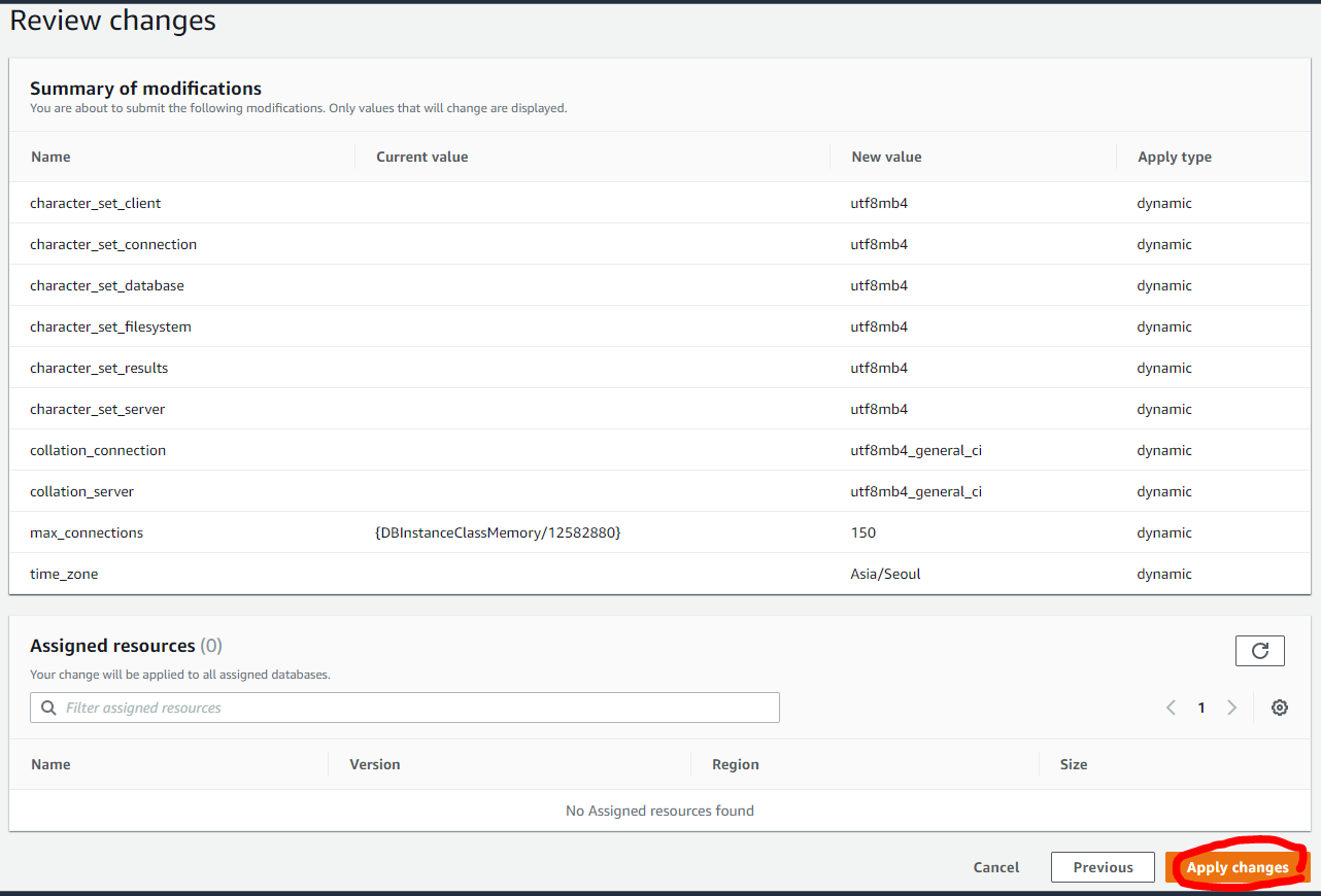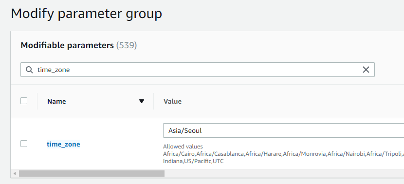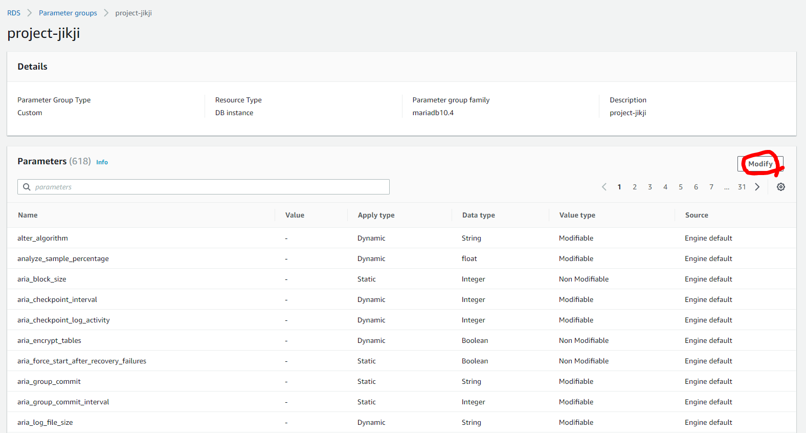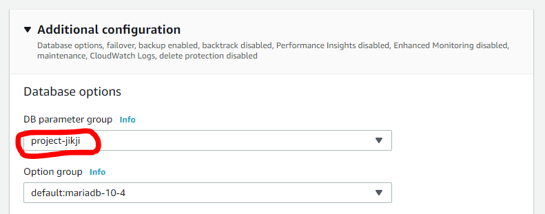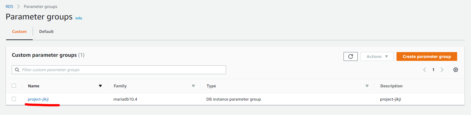 이렇게 생성된 파라미터 그룹을 데이터베이스에 연결해보자.