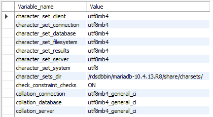 이 두 항목은 MariaDB에서만 RDS 파라미터 그룹으로는 변경되지 않는다고 한다.